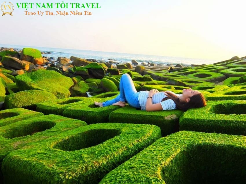 9h30: Check in Bờ Đá Rêu Xanh Nha Trang: Mê mẩn với thảm rêu xanh ấn tượng ở biển Nha Trang, một quà tặng tuyệt vời từ thiên nhiên.