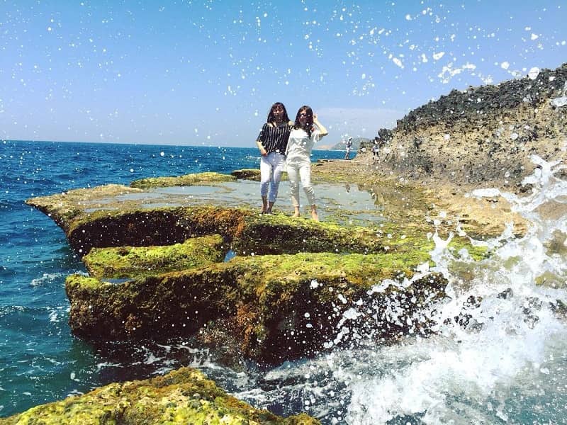 Những khối đá xen kẽ nhau và càng ra xa thì bạn sẽ càng chiêm ngưỡng được nét đẹp toàn cảnh của nơi đây. Chỉ có điều, trên những hòn đá là rêu bám, trơn trợt, ướt lạnh. Có những chỗ khác thì khá khô ráo, du khách có thể tha hồ chụp ảnh tại đây.