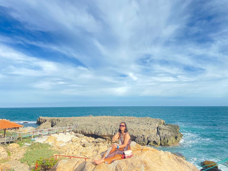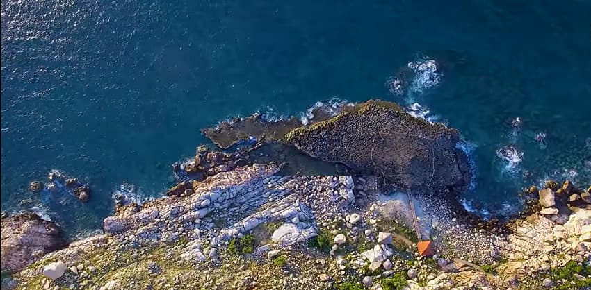 Một nửa còn lại là khối đá lộn xộn, kỳ lạ. Từ đây nhìn xuống, bạn có thể nhìn thấu tận đáy làn nước trong xanh. Những tảng đá ấy có phần đẹp, cũng có phần nguy hiểm. Bạn nên cẩn thận, khéo léo bước trên những tảng đá này.