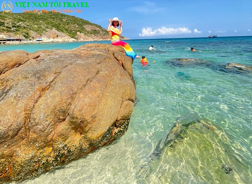 Tour Đảo Bình Ba Nha Trang có rất nhiều cảnh đẹp để check in sống ảo chính vì vậy chị em phụ nữ nên mang theo 2 - 3 bộ đồ để tới mỗi điểm thì check in 1 bộ, chương trình có tắm biển nên Du Khách hãy mang đồ tắm biển đi nhé!