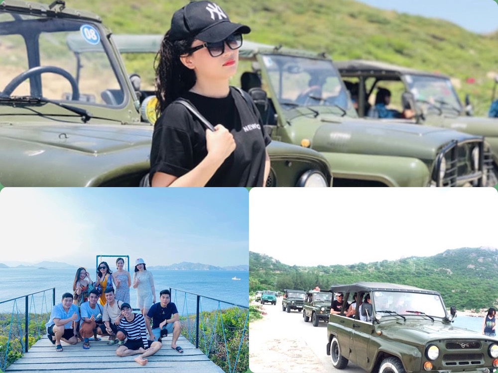 Đoàn tiếp tục lên xe jeep khởi hành tham quan những điểm du lịch nổi tiếng nhất trên Đảo Bình Ba Nha Trang.