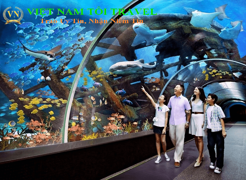Tham quan thế dưới đại dương đầy màu sắc cùng với khoảng gần 10.000 sinh vật biển đang tung tăng bới lội tại Thủy cung Vinpearlland. Khám phá các trò chơi như trượt ống, trượt máng, sóng thần, hố đen vũ trụ,… hoặc lựa chọn ngâm mình dưới làn nước biển trong xanh tại khu công viên nước.