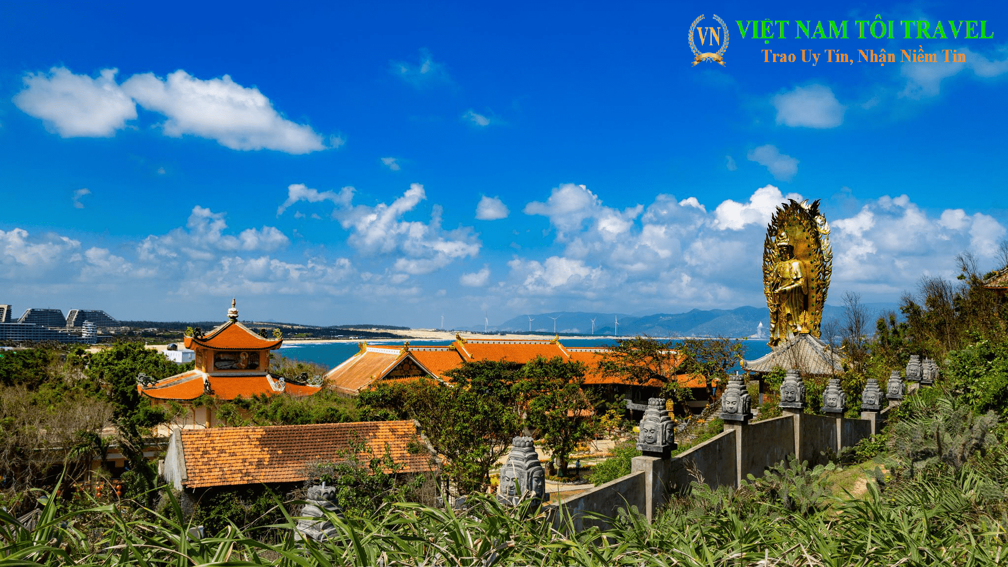 14h00: Quý khách tiếp tục viếng Tịnh xá Ngọc Hòa – Chiêm ngưỡng pho tượng Phật đôi Quan thế Âm cao nhất Việt Nam 30m.