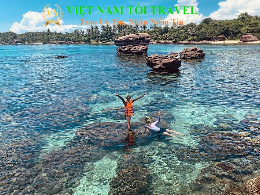 Sáng : Sau khi dùng điểm tâm sáng, xe đưa đoàn tiến về phía Nam, lên tàu câu cá và bơi ngắm san hô tại Đảo Phú Quốc.