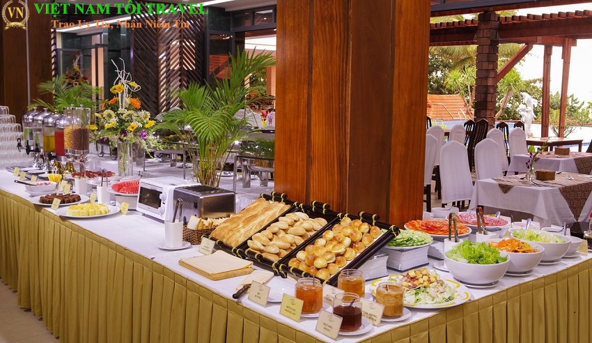 Buffet sáng tại 1 trong những resort/ khách sạn Phú Quốc trong chương trình tour.