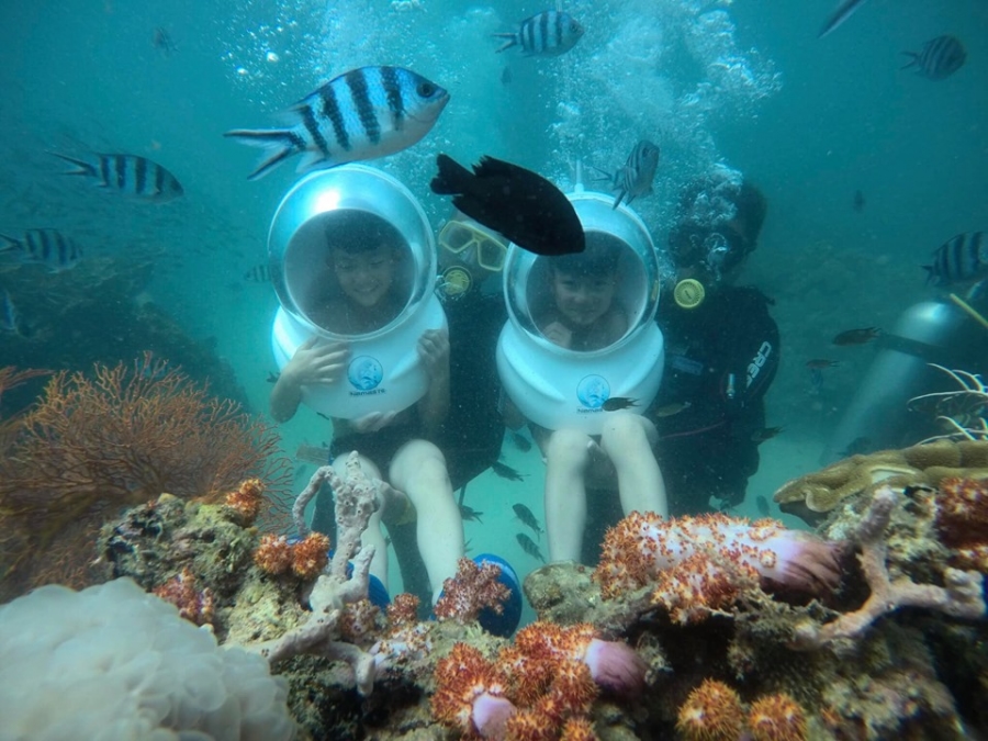 Đi bộ dưới biển trải nghiệm thú vị với mũ chụp dễ sử dụng!